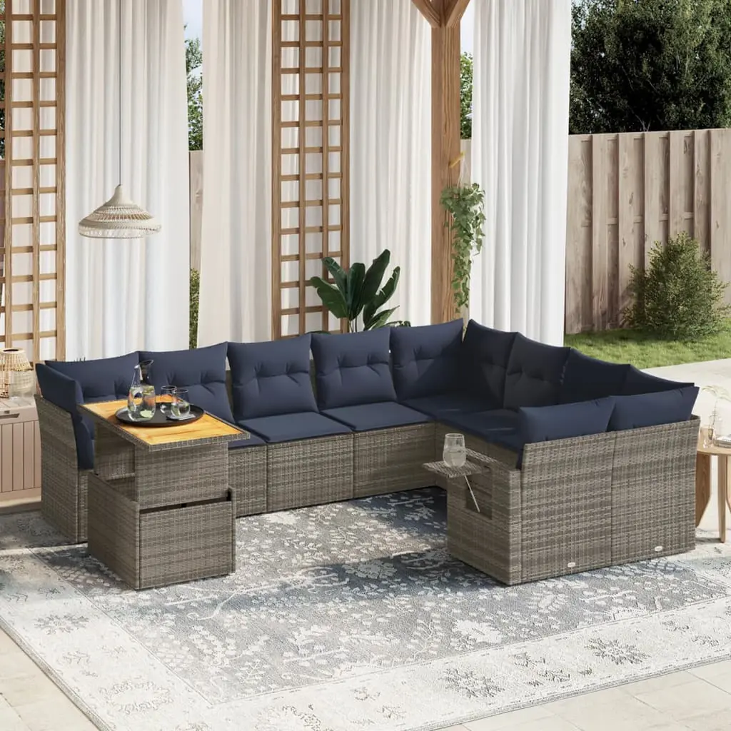 Vidaxl 10 Piece Patio Sofa Set With Cushions Gray Poly Rattan