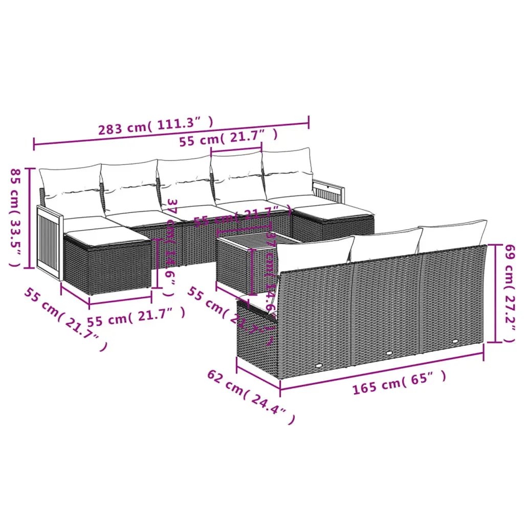 Vidaxl 11 Piece Garden Sofa Set With Cushions Black Poly Rattan
