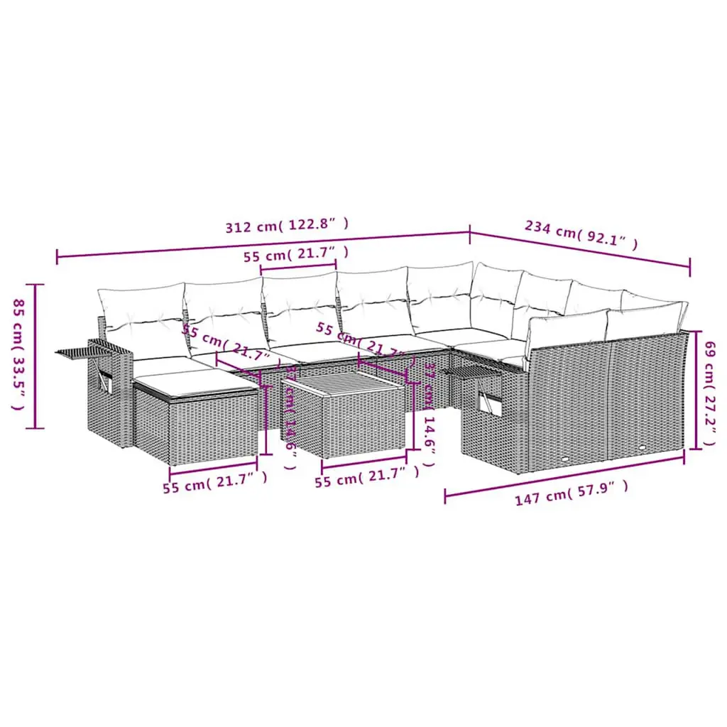 Vidaxl 11 Piece Garden Sofa Set With Cushions Grey Poly Rattan