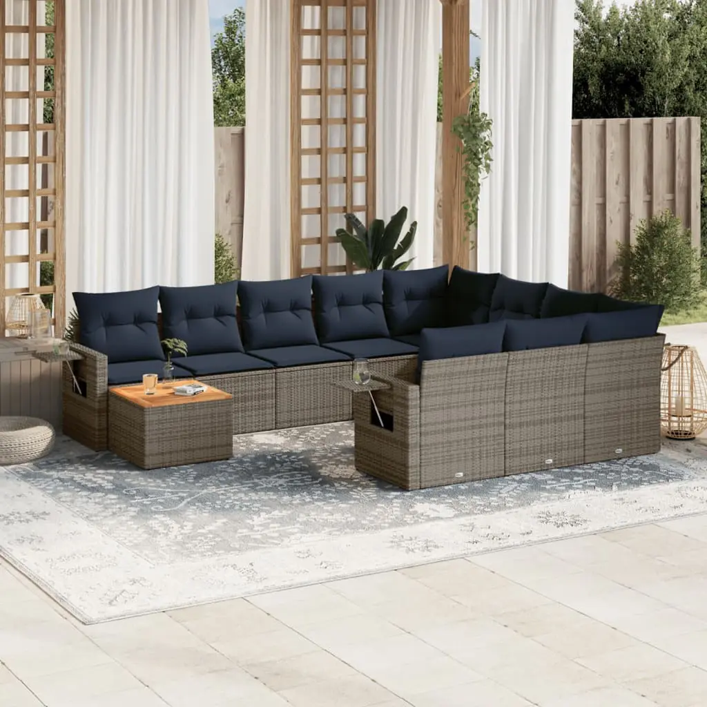Vidaxl 11 Piece Garden Sofa Set With Cushions Grey Poly Rattan