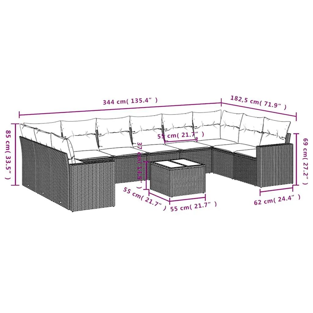 Vidaxl 11 Piece Patio Sofa Set With Cushions Grey Poly Rattan (Us Only)