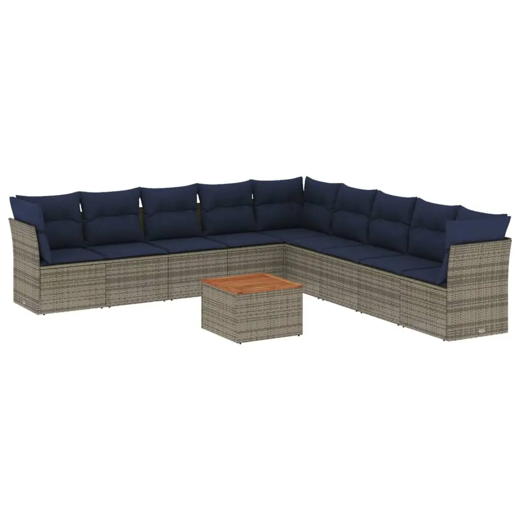 Vidaxl 11 Piece Patio Sofa Set With Cushions Grey Poly Rattan (Us Only)