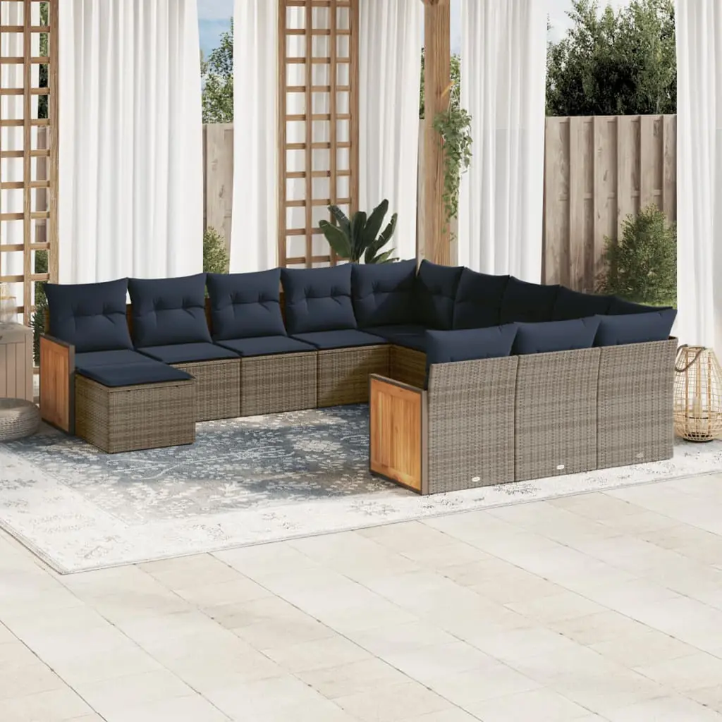 Vidaxl 12 Piece Garden Sofa Set With Cushions Grey Poly Rattan