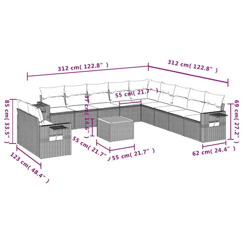 Vidaxl 12 Piece Garden Sofa Set With Cushions Grey Poly Rattan