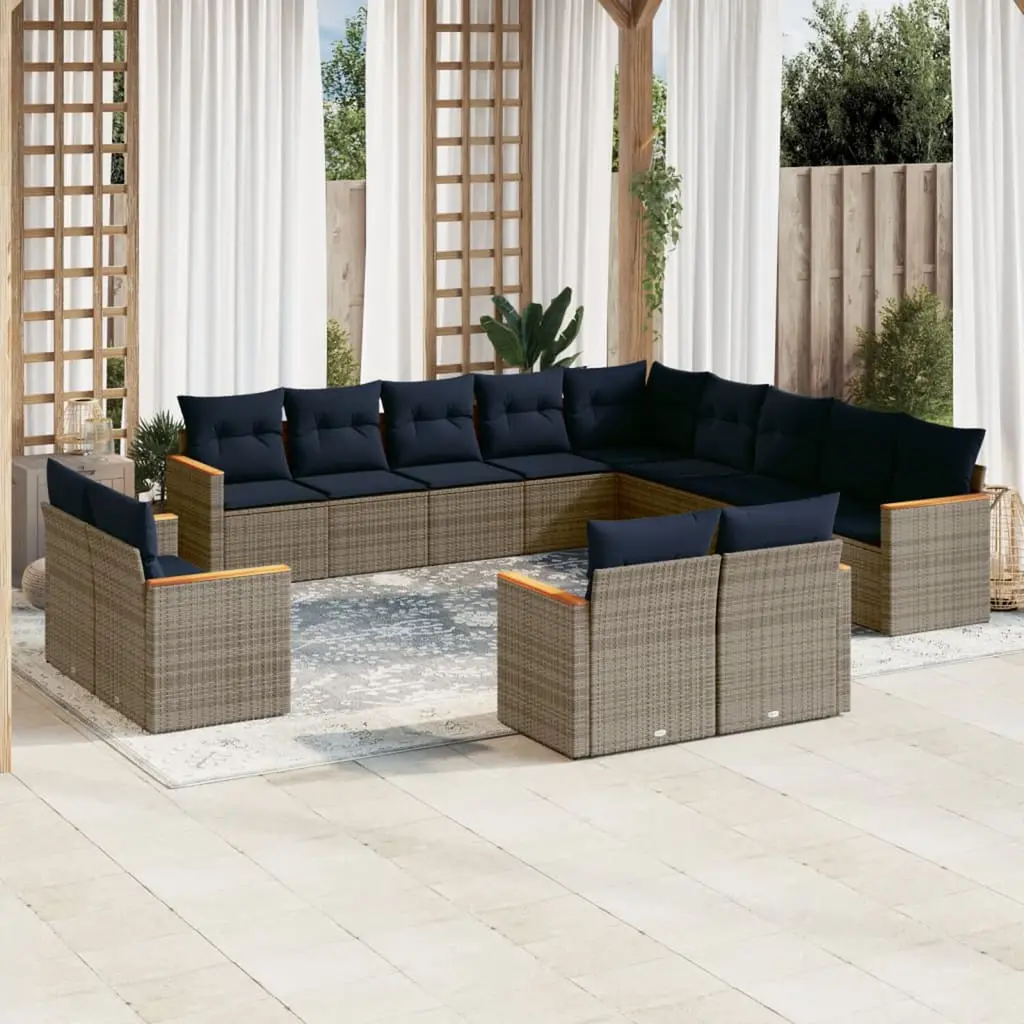 Vidaxl 13 Piece Garden Sofa Set With Cushions Grey Poly Rattan