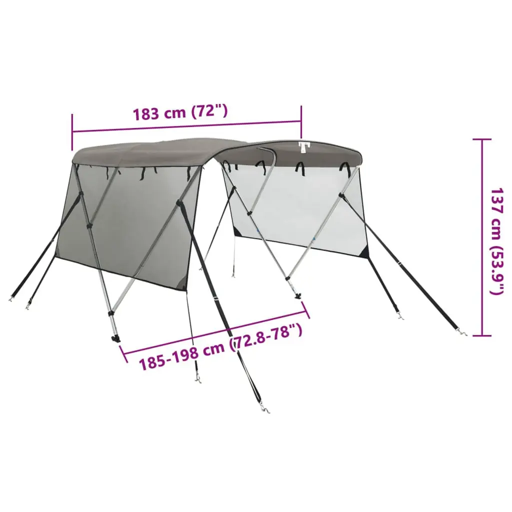 Vidaxl 3-Bow Bimini Top With Mesh Sidewalls 72.0x(72.8-78.0)x53.9"