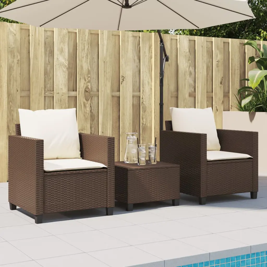 Vidaxl 3 Piece Bistro Set With Cushions Brown Poly Rattan