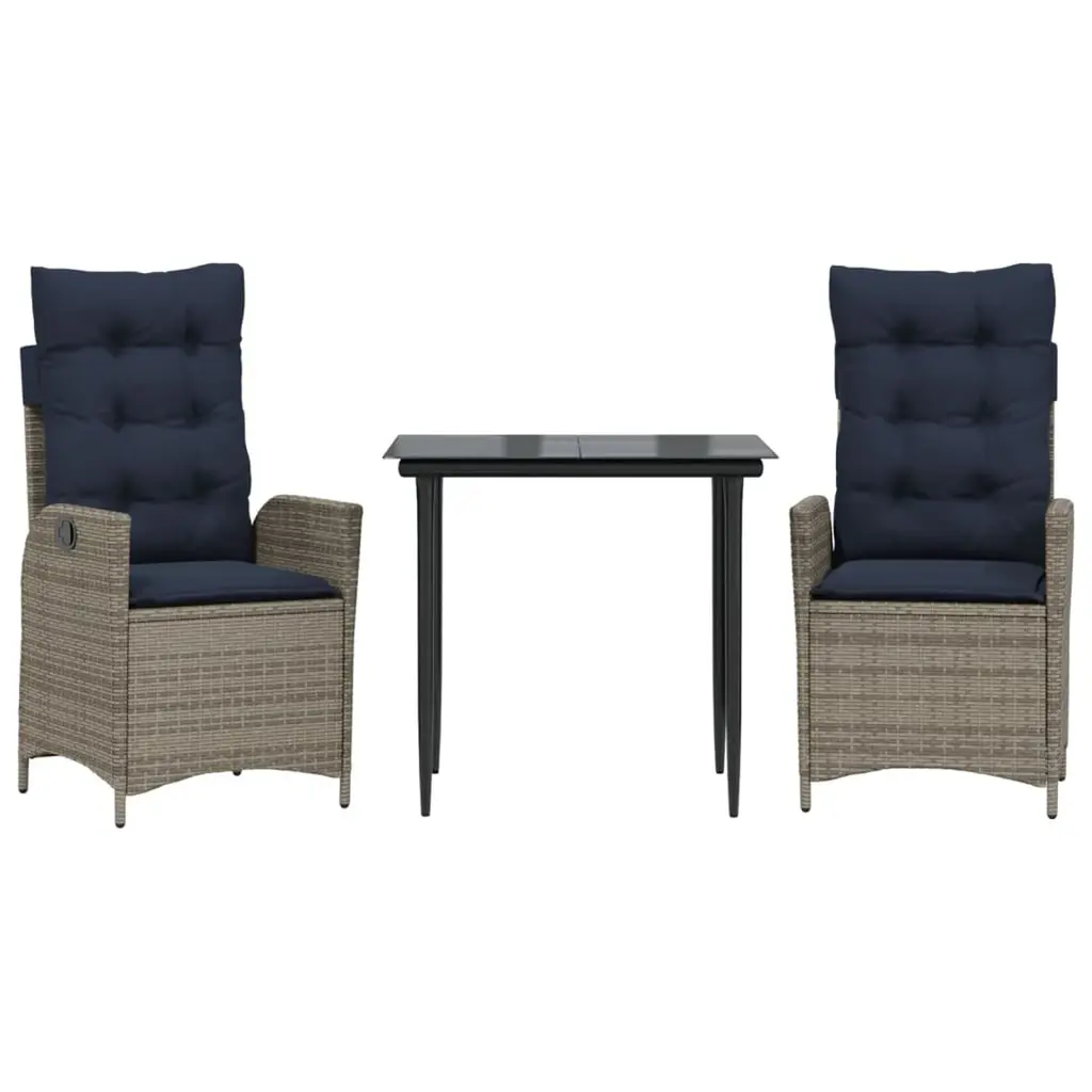 Vidaxl 3 Piece Bistro Set With Cushions Gray Poly Rattan