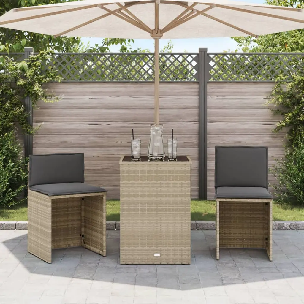Vidaxl 3 Piece Bistro Set With Cushions Light Grey Poly Rattan