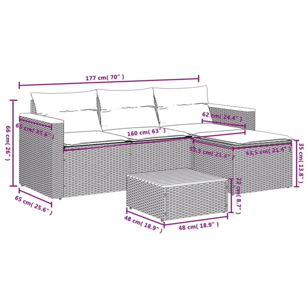 This garden sofa set is the perfect addition to your backyard, terrace, or patio, providing a comfortable and inviting space for chatting with family and friends or simply relaxing and enjoying the outdoors. Durable material: PE rattan, also known as poly rattan, is a strong, low-maintenance synthetic material that looks like natural rattan. It's lightweight, easy to clean, and commonly used for outdoor furniture due to its durability and weather-resistant properties.Stable and easy-to-clean tabletop: This garden table has an acacia wood top that is sturdy, durable, and easy to clean with a damp cloth.Comfortable seat experience: This outdoor furniture, complete with thickly padded cushions, offers a comfortable seating experience.Removable and washable cover: These seat cushions feature removable covers for easy washing and maintenance.Modular design: This outdoor furniture set has a modular design, making it completely flexible and easy to move around, so you can create a customized outdoor furniture arrangement. Good to know:To make sure your outdoor furniture stays beautiful, we recommend protecting it with a waterproof cover.