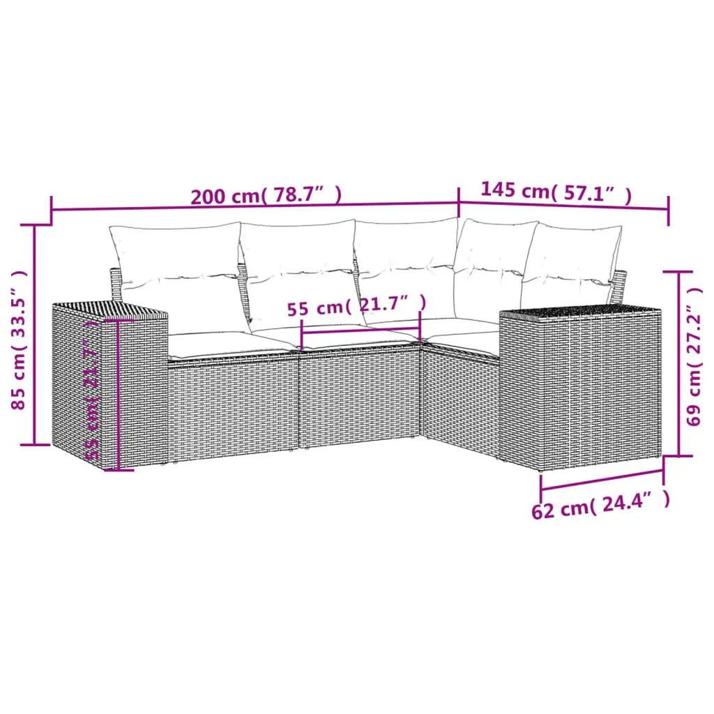 Vidaxl 4 Piece Garden Sofa Set With Cushions Grey Poly Rattan