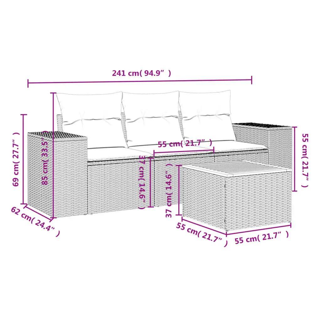 Vidaxl 4 Piece Patio Sofa Set With Cushions Gray Poly Rattan