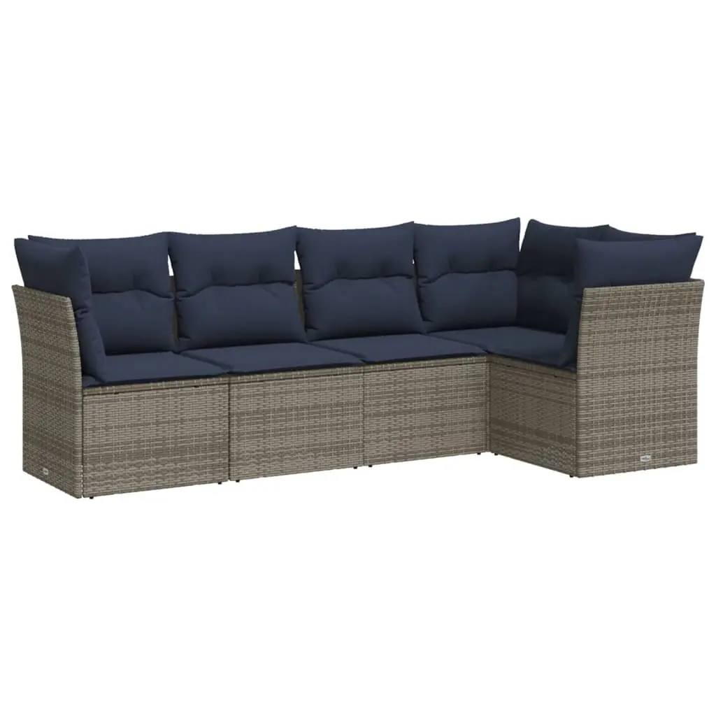 Vidaxl 5 Piece Patio Sofa Set With Cushions Gray Poly Rattan