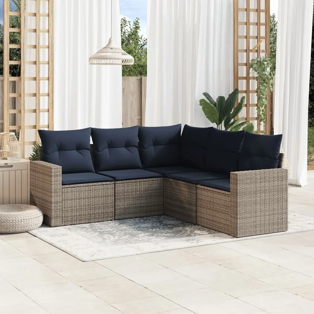 Vidaxl 5 Piece Patio Sofa Set With Cushions Gray Poly Rattan