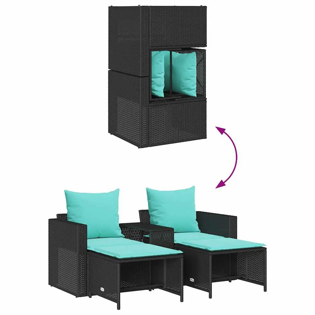 Vidaxl 5 Piece Patio Sofa Set With Cushions Stackable Black Poly Rattan