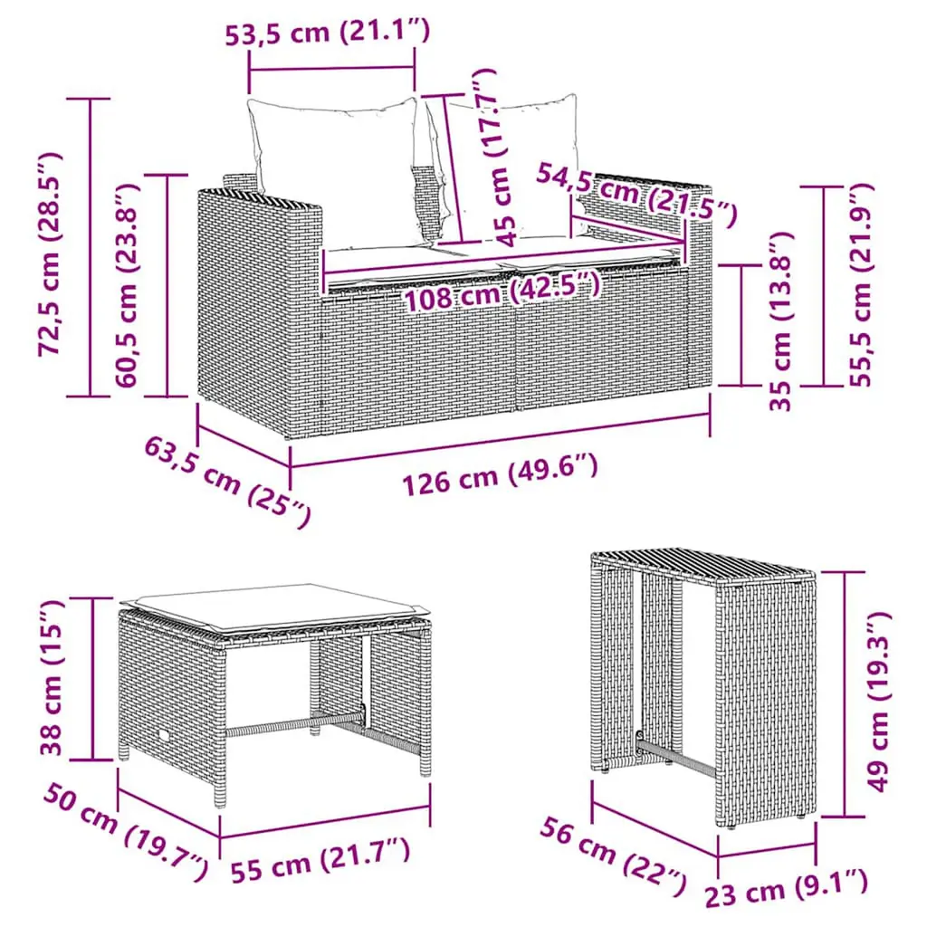 This patio sofa set is the perfect addition to your backyard, terrace, or patio, providing a comfortable and inviting space for chatting with family and friends or simply relaxing and enjoying the outdoors.Durable material: PE rattan, also known as poly rattan, is a strong, low-maintenance synthetic material that looks like natural rattan. It's lightweight, easy to clean, and commonly used for outdoor furniture due to its durability and weather-proof properties.Comfortable seat experience: This outdoor furniture, complete with thickly padded cushions, offers a comfortable seating experience.Removable and washable cover: These seat cushions feature removable covers for easy washing and maintenance.Stackable for space saving: This outdoor sofa set can be conveniently stacked into a compact rectangular structure, making it easy to store and ideal for maximizing space when not in use.Modular design: This outdoor furniture set has a modular design, making it completely flexible and easy to move around, so you can create a customized outdoor furniture arrangement.Good to know:To make sure your outdoor furniture stays beautiful, we recommend protecting it with a waterproof cover.