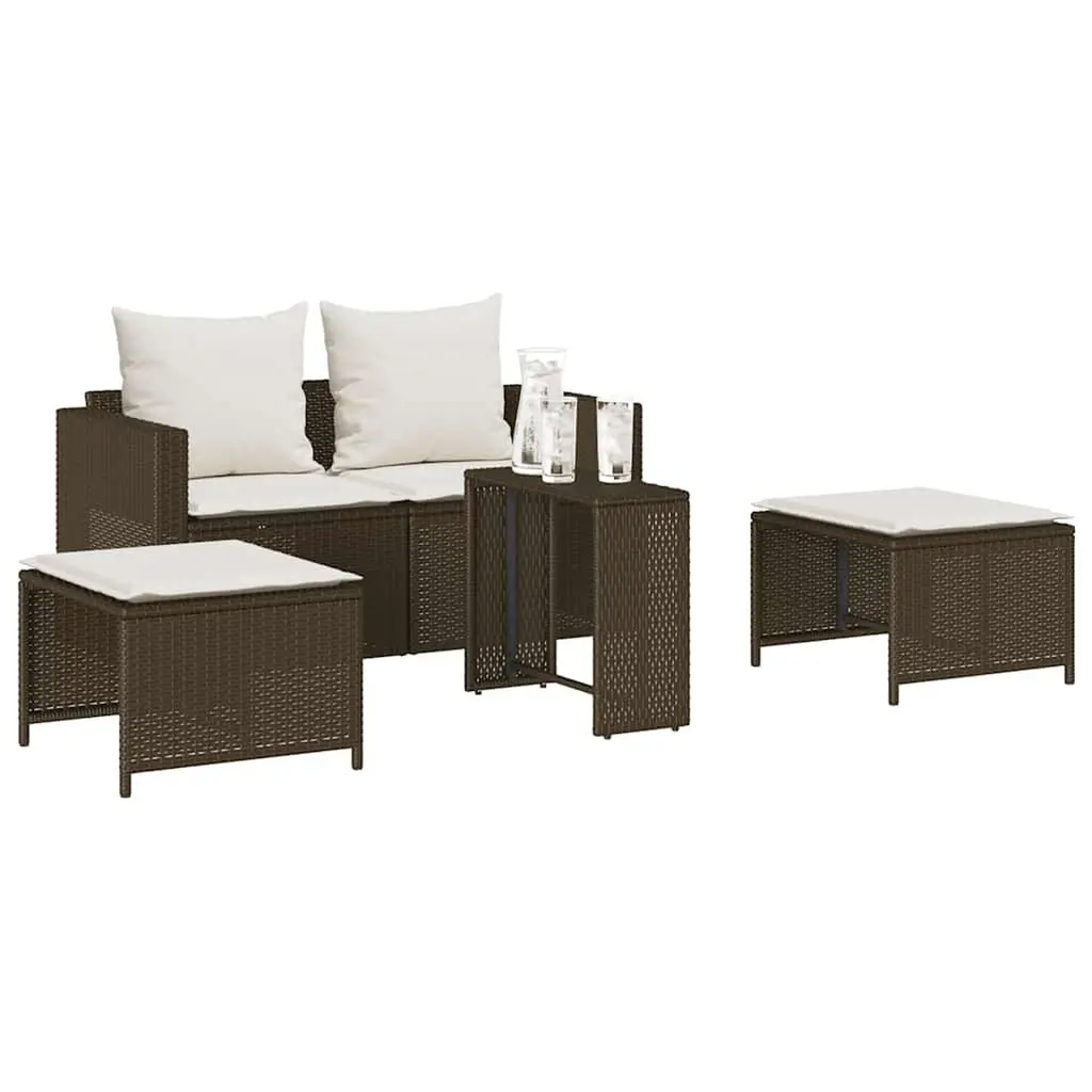 Vidaxl 5 Piece Patio Sofa Set With Cushions Stackable Brown Poly Rattan