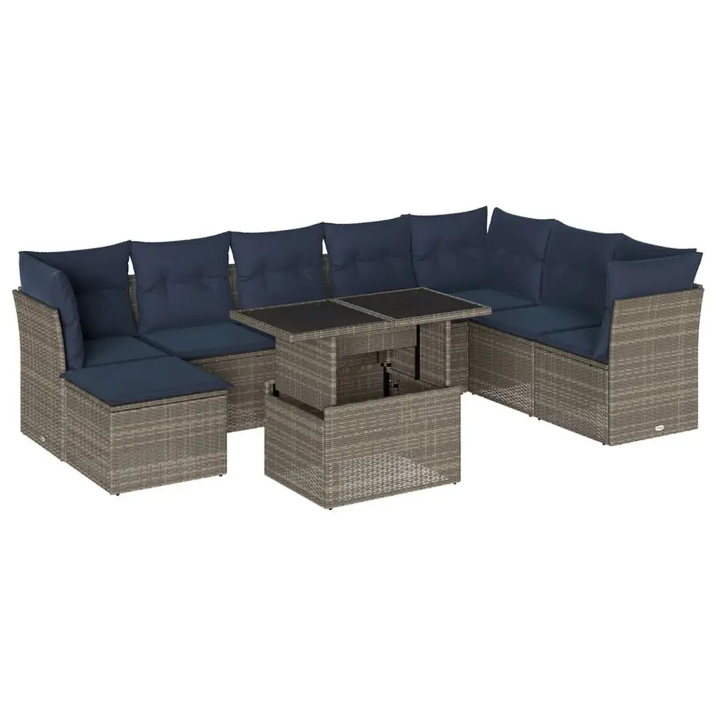 This garden sofa set is the perfect addition to your backyard, terrace, or patio, providing a comfortable and inviting space for chatting with family and friends or simply relaxing and enjoying the outdoors.Durable material: PE rattan, also known as poly rattan, is a strong, low-maintenance synthetic material that looks like natural rattan. It's lightweight, easy to clean, and commonly used for outdoor furniture due to its durability and weather-resistant properties.Adjustable tabletop: The tabletop can be lifted to make the table higher, which transforms the outdoor table from a coffee table to a dining table. It's perfect for having guests over or eating meals outside.Comfortable seat experience: This outdoor furniture, complete with thickly padded cushions, offers a comfortable seating experience.Removable and washable cover: These seat cushions feature removable covers for easy washing and maintenance.Modular design: This outdoor furniture set has a modular design, making it completely flexible and easy to move around, so you can create a customised outdoor furniture arrangement. Good to know:To make sure your outdoor furniture stays beautiful, we recommend protecting it with a waterproof cover.