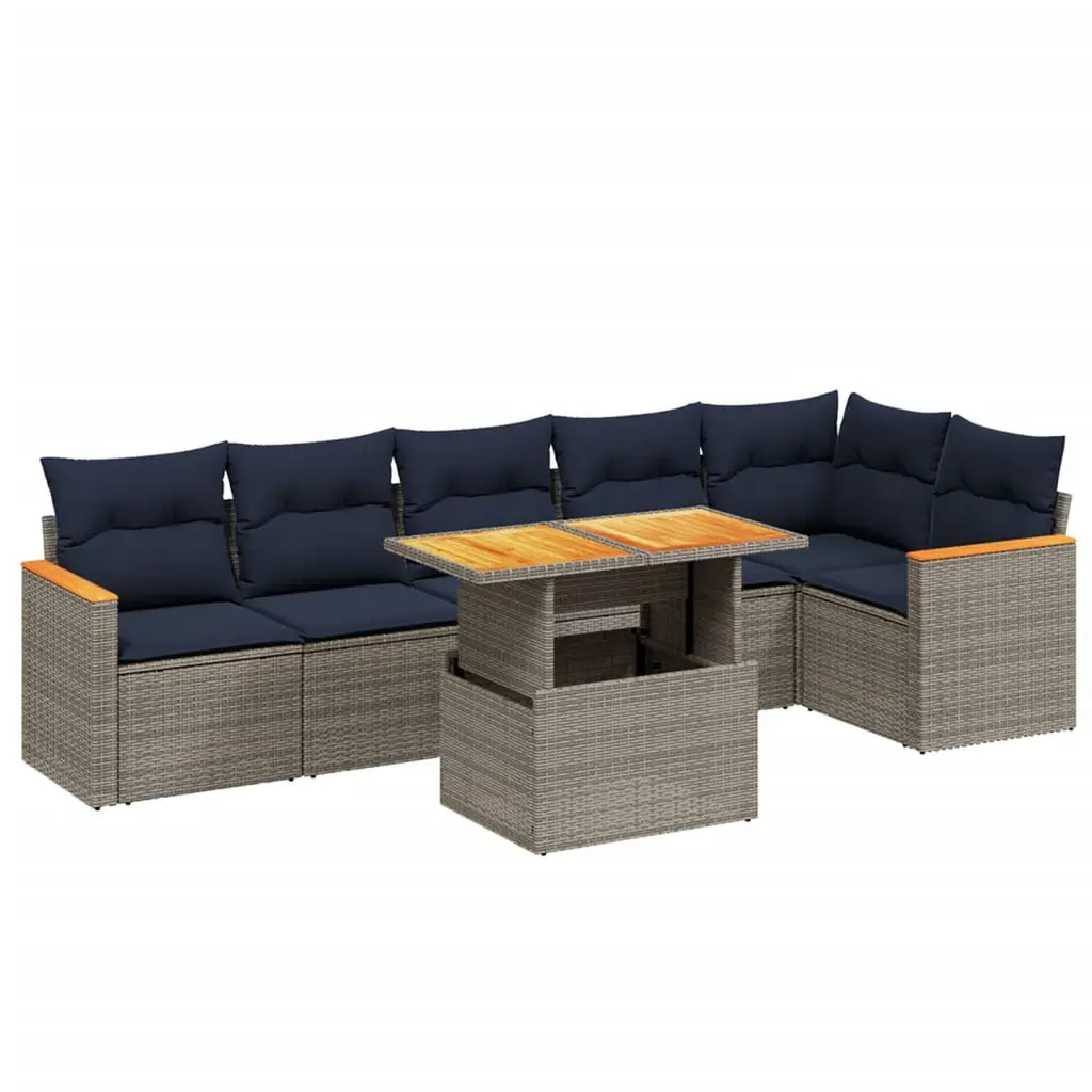This garden sofa set is the perfect addition to your backyard, terrace, or patio, providing a comfortable and inviting space for chatting with family and friends or simply relaxing and enjoying the outdoors.Durable material: PE rattan, also known as poly rattan, is a strong, low-maintenance synthetic material that looks like natural rattan. It's lightweight, easy to clean, and commonly used for outdoor furniture due to its durability and weather-proof properties.Adjustable tabletop: The tabletop can be lifted up to make the table higher, which transforms the outdoor table from a coffee table to a dining table. It's perfect for having guests over or eating meals outside.Removable and washable cover: These seat cushions feature removable covers for easy washing and maintenance.Modular design: This outdoor furniture set has a modular design, making it completely flexible and easy to move around, so you can create a customized outdoor furniture arrangement.Good to know:To make sure your outdoor furniture stays beautiful, we recommend protecting it with a waterproof cover.