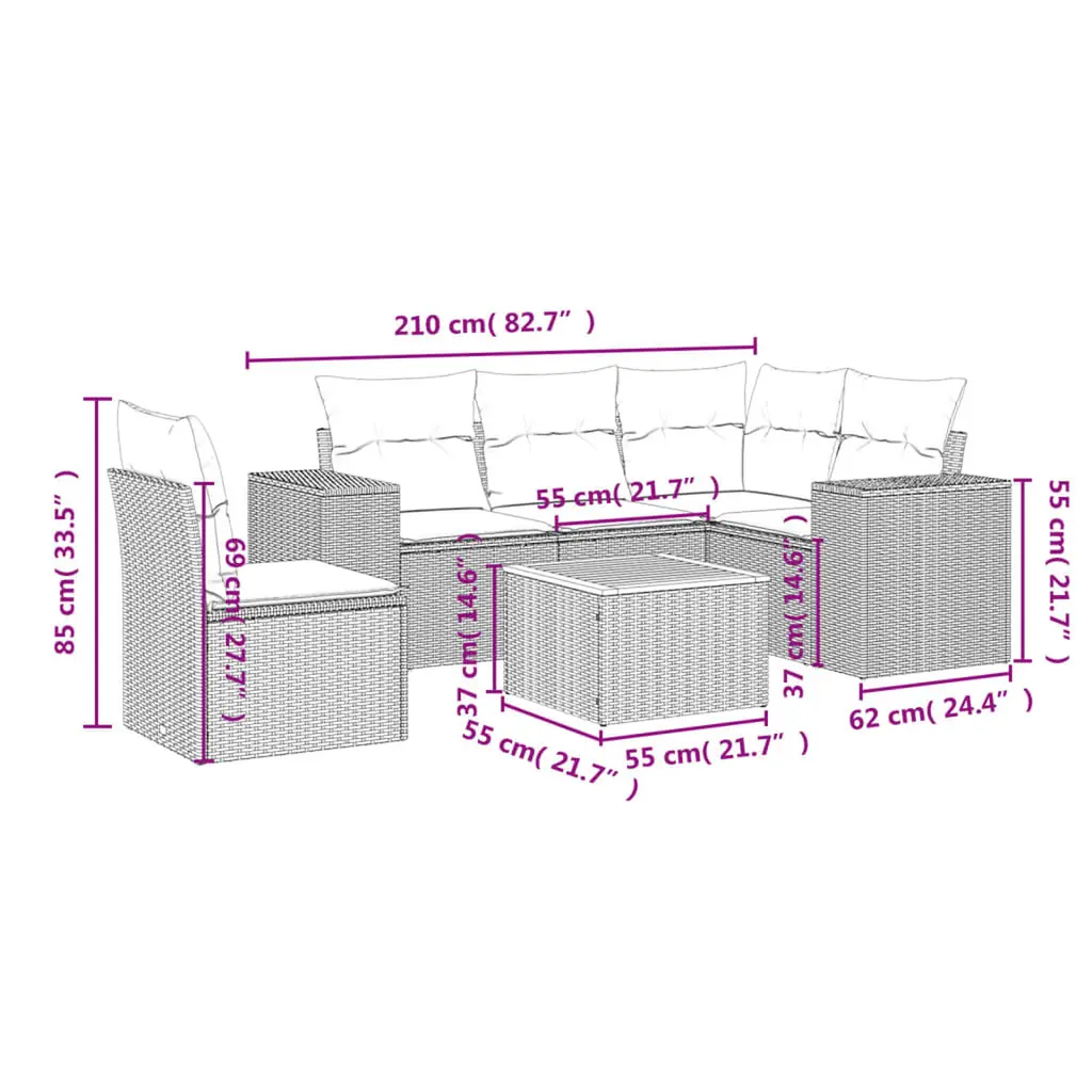 Vidaxl 6 Piece Patio Sofa Set With Cushions Black Poly Rattan