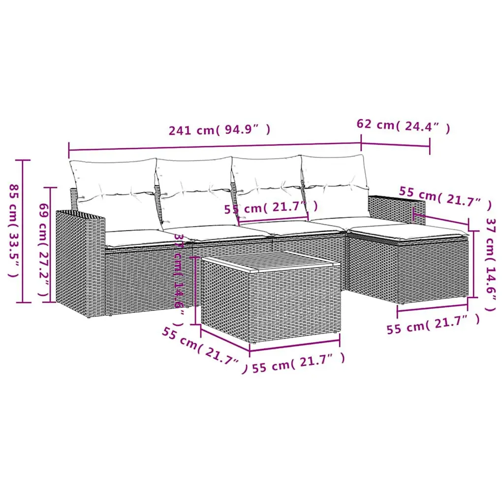 Vidaxl 6 Piece Patio Sofa Set With Cushions Black Poly Rattan