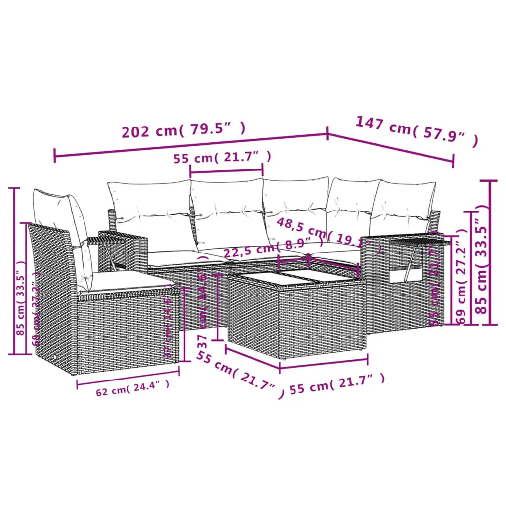 Vidaxl 6 Piece Patio Sofa Set With Cushions Brown Poly Rattan