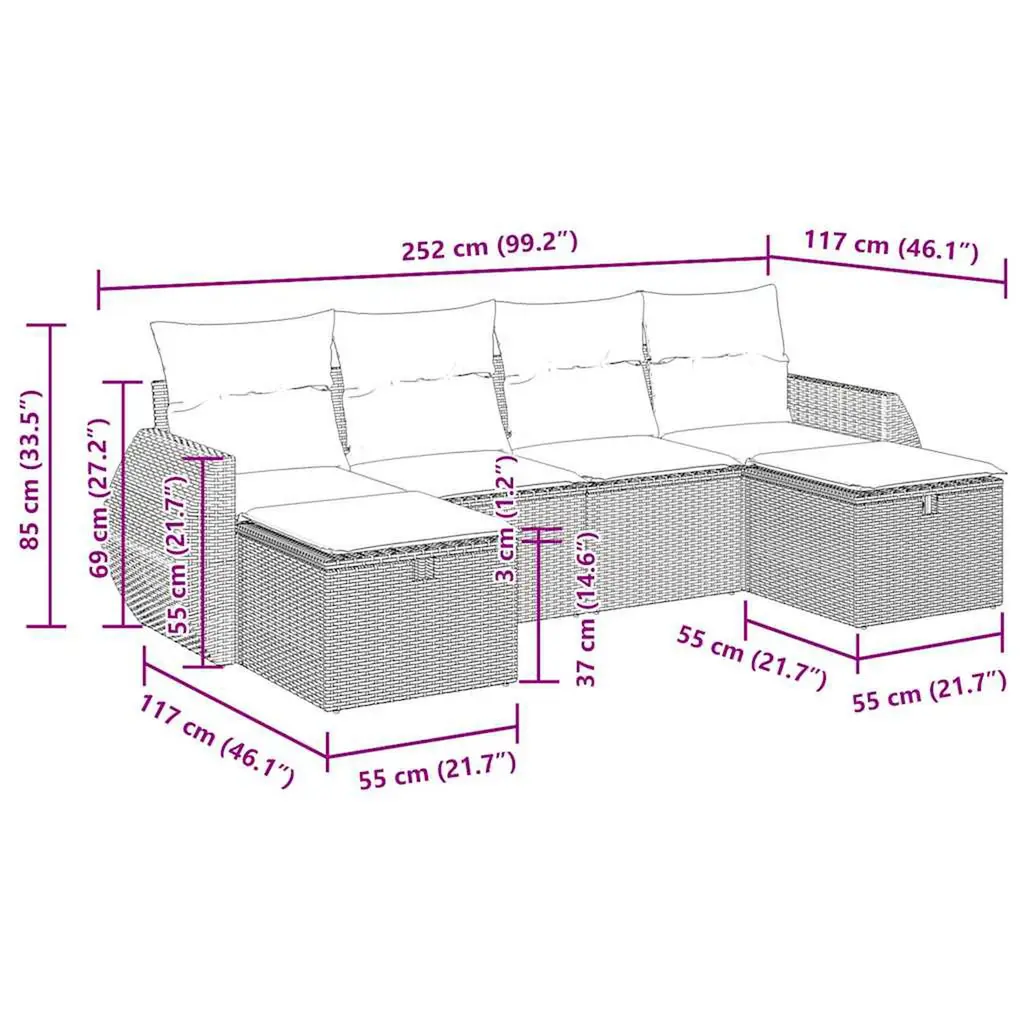 Vidaxl 6 Piece Patio Sofa Set With Cushions Gray Poly Rattan