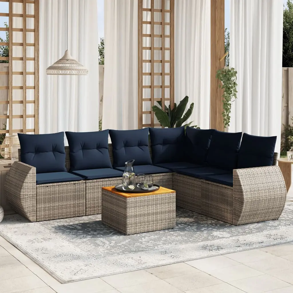 Vidaxl 7 Piece Garden Sofa Set With Cushions Grey Poly Rattan