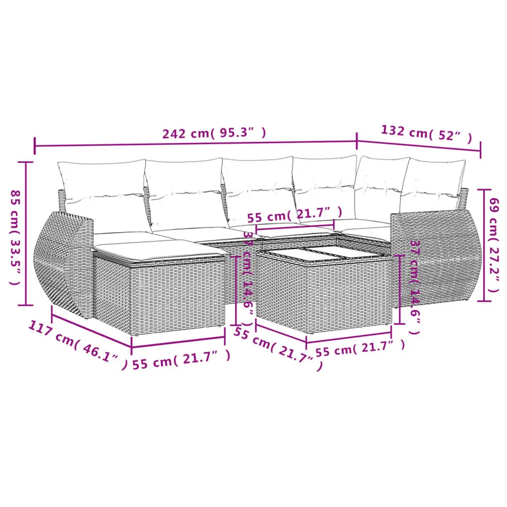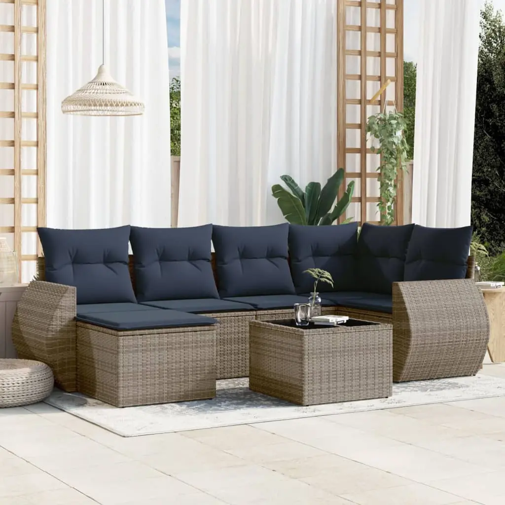 Vidaxl 7 Piece Garden Sofa Set With Cushions Grey Poly Rattan