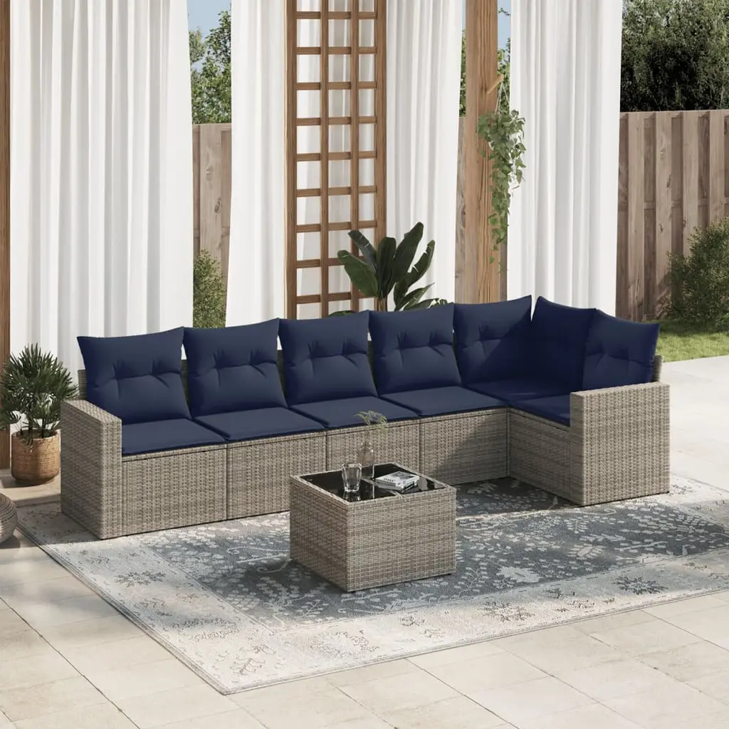 Vidaxl 7 Piece Patio Sofa Set With Cushions Gray Poly Rattan