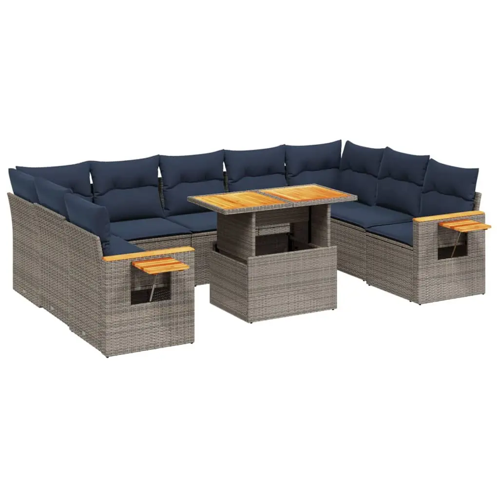 This garden sofa set is the perfect addition to your backyard, terrace, or patio, providing a comfortable and inviting space for chatting with family and friends or simply relaxing and enjoying the outdoors.Durable material: PE rattan, also known as poly rattan, is a strong, low-maintenance synthetic material that looks like natural rattan. It's lightweight, easy to clean, and commonly used for outdoor furniture due to its durability and weather-proof properties.Adjustable tabletop: The tabletop can be lifted up to make the table higher, which transforms the outdoor table from a coffee table to a dining table. It's perfect for having guests over or eating meals outside.Removable and washable cover: These seat cushions feature removable covers for easy washing and maintenance.Modular design: This outdoor furniture set has a modular design, making it completely flexible and easy to move around, so you can create a customized outdoor furniture arrangement.Good to know:To make sure your outdoor furniture stays beautiful, we recommend protecting it with a waterproof cover.