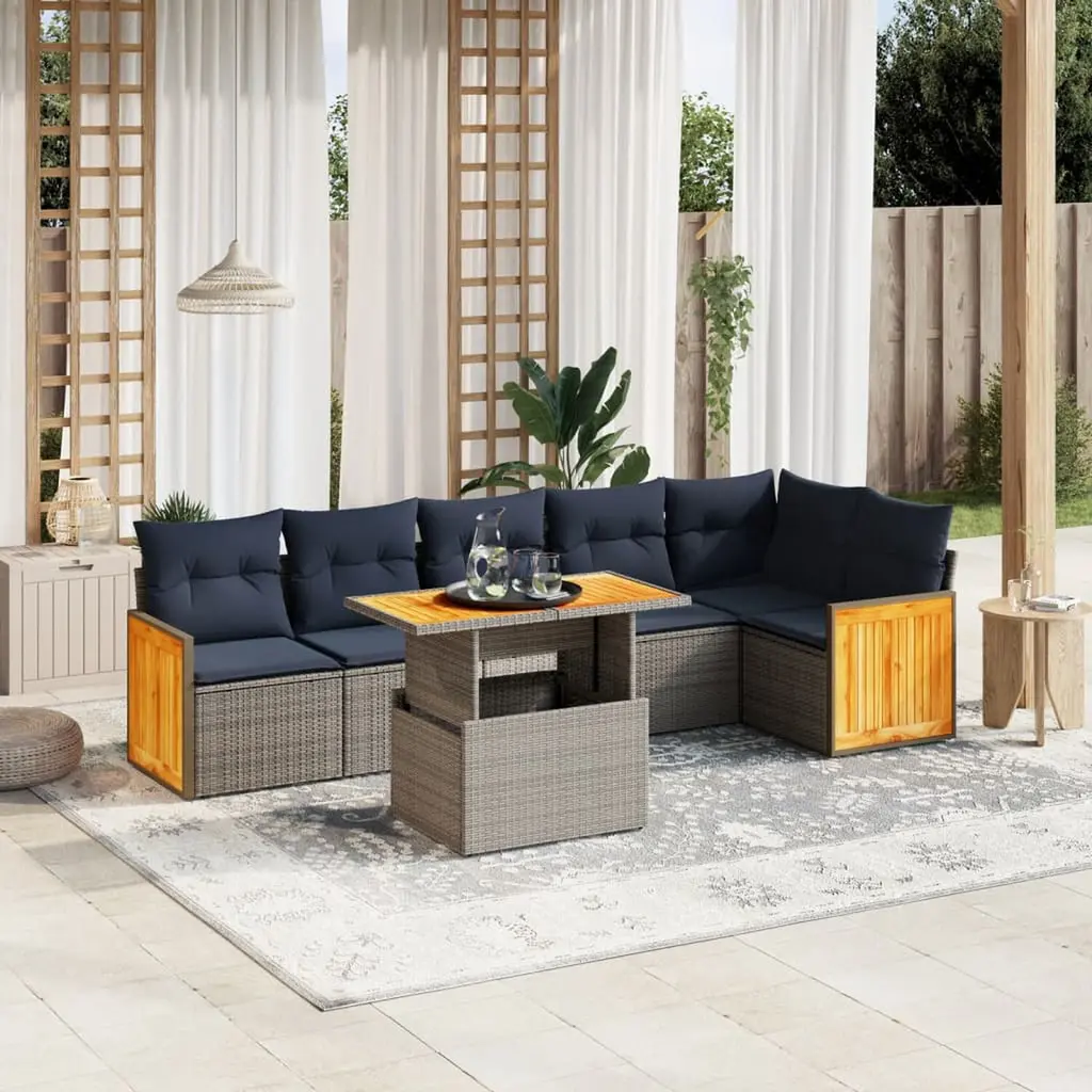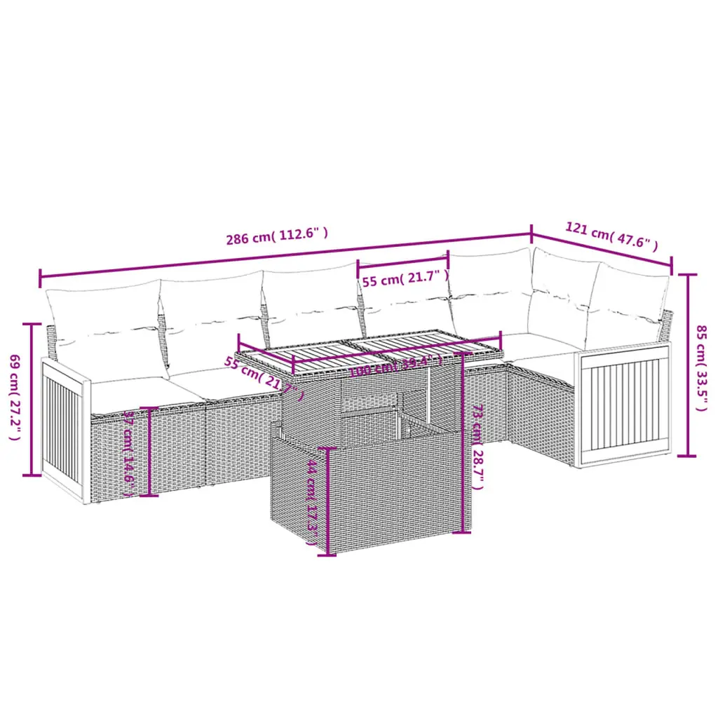 Vidaxl 7 Piece Patio Sofa Set With Cushions Gray Poly Rattan