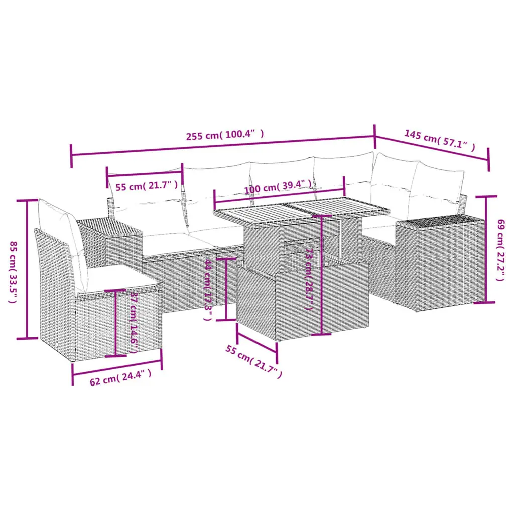 Vidaxl 7 Piece Patio Sofa Set With Cushions Gray Poly Rattan