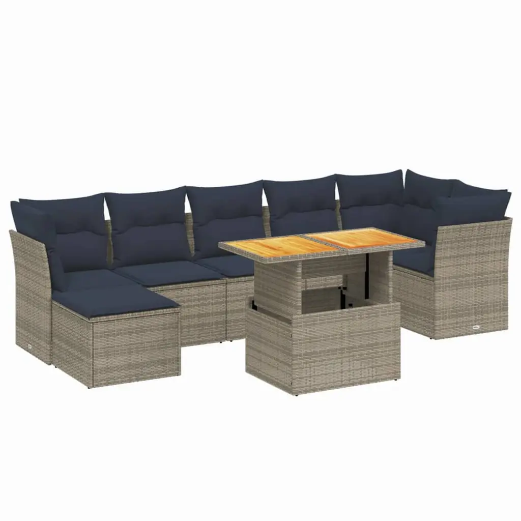 Vidaxl 8 Piece Garden Sofa Set With Cushions Grey Poly Rattan