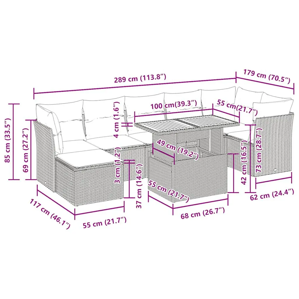 Vidaxl 8 Piece Patio Sofa Set With Cushions Black Poly Rattan