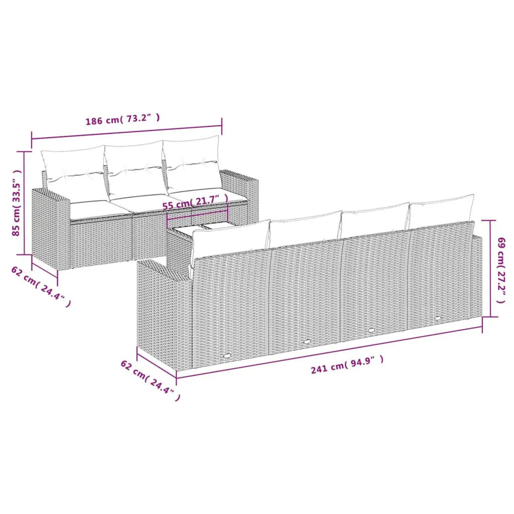 Vidaxl 8 Piece Patio Sofa Set With Cushions Brown Poly Rattan