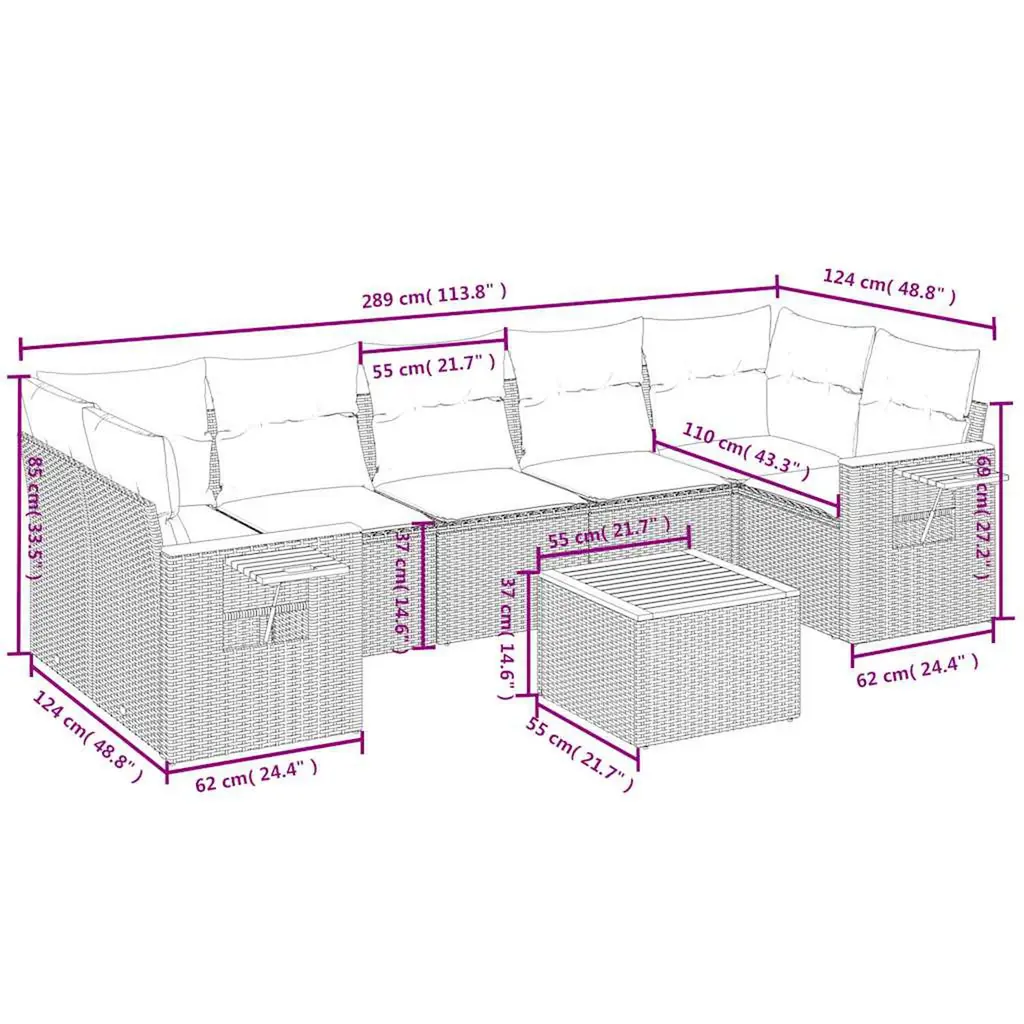 Vidaxl 8 Piece Patio Sofa Set With Cushions Grey Poly Rattan (Us Only)