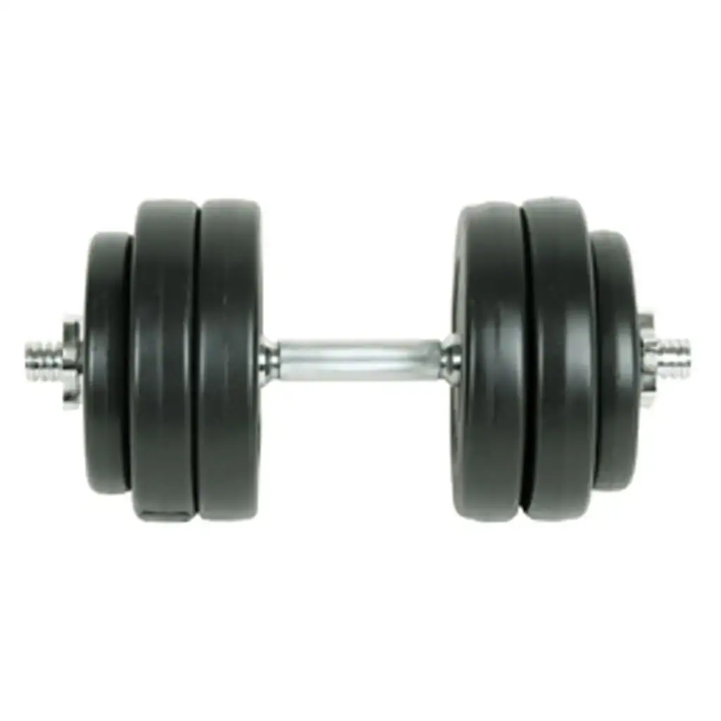 This versatile dumbbell set is perfect for targeting chest, biceps, arms, triceps and back muscles. It includes four 2.5 kg weight plates, two 1.25 kg weight plates and one 2.5 kg dumbbell bar with screw collars and has a total weight of about 15 kg. This set allows the users to variably select the weights they want to lift for different exercises.The structure of the handle provides maximum grip so the dumbbell bar lies firmly in your hands. This dumbbell has star-shaped screw collars in order to keep the weights in place. This set can be easily combined with our weight benches or other dumbbell sets.Properties: