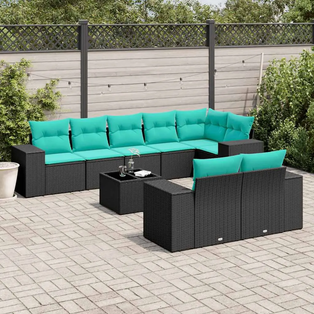 Vidaxl 9 Piece Garden Sofa Set With Cushions Black Poly Rattan