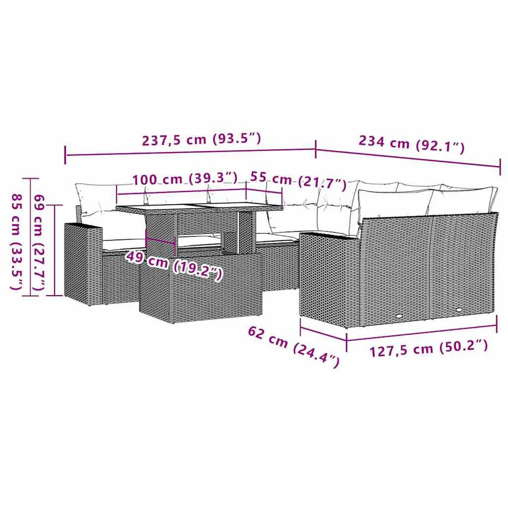 This garden sofa set is the perfect addition to your backyard, terrace, or patio, providing a comfortable and inviting space for chatting with family and friends or simply relaxing and enjoying the outdoors.Durable material: PE rattan, also known as poly rattan, is a strong, low-maintenance synthetic material that looks like natural rattan. It's lightweight, easy to clean, and commonly used for outdoor furniture due to its durability and weather-resistant properties.Adjustable tabletop: The tabletop can be lifted to make the table higher, which transforms the outdoor table from a coffee table to a dining table. It's perfect for having guests over or eating meals outside.Comfortable seat experience: This outdoor furniture, complete with thickly padded cushions, offers a comfortable seating experience.Removable and washable cover: These seat cushions feature removable covers for easy washing and maintenance.Modular design: This outdoor furniture set has a modular design, making it completely flexible and easy to move around, so you can create a customised outdoor furniture arrangement. Good to know:To make sure your outdoor furniture stays beautiful, we recommend protecting it with a waterproof cover.