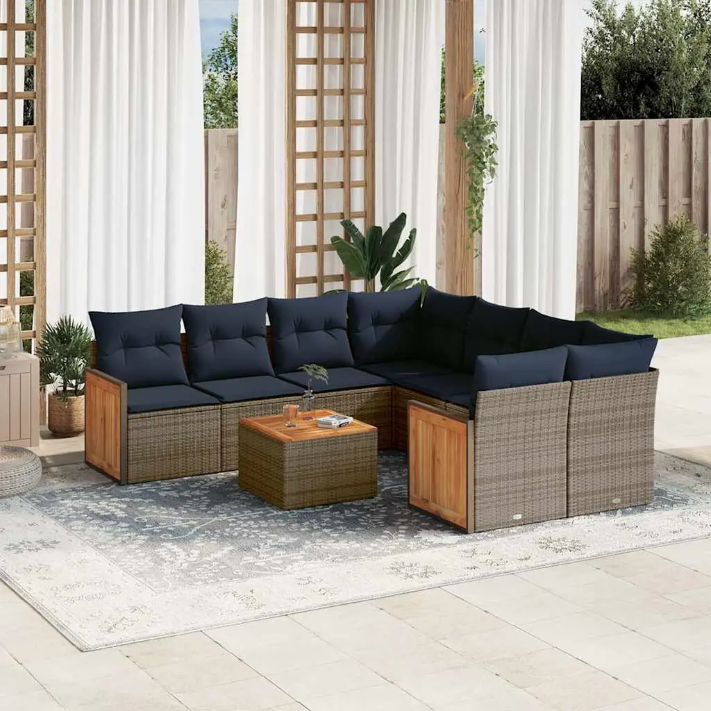Vidaxl 9 Piece Garden Sofa Set With Cushions Grey Poly Rattan