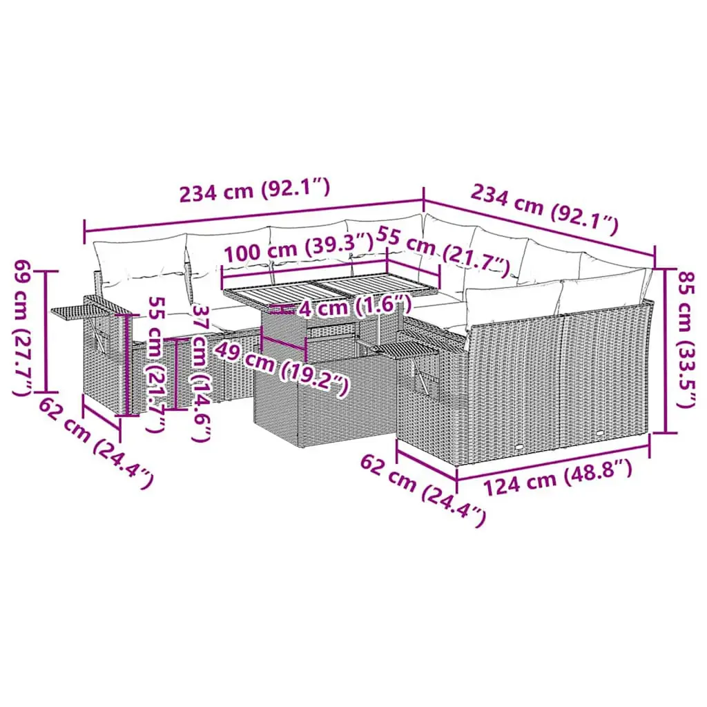 Vidaxl 9 Piece Patio Sofa Set With Cushions Black Poly Rattan