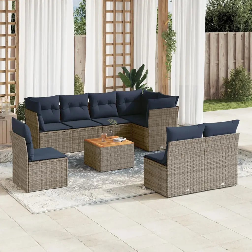 Vidaxl 9 Piece Patio Sofa Set With Cushions Gray Poly Rattan