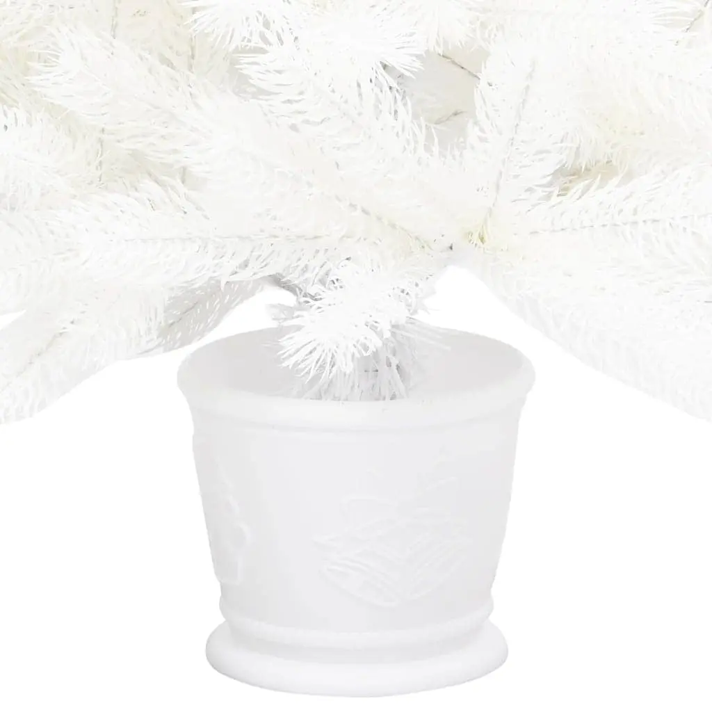 This beautiful white artificial Christmas tree with a pot is lifelike in its shape and appearance, creating just the right atmosphere for the coming Christmas. This realistic tree has needle-shaped PE branches, which are made through injection moulding. It is lightweight, weather resistant and durable. The lovely Christmas tree is water resistant. The branches can be arranged in any shape. This Christmas tree can be used every year, making it a very economical choice compared to a real tree. Additionally, the tree is firmly cemented in the pot for stability. Featuring energy-efficient LED lights, it lights up beautifully and creates a cosy holiday atmosphere. What's more, decorated with the beautiful peak and balls, this Xmas tree will be eye-catching in your home. Have fun during the holidays with this lovely Christmas tree!Properties: