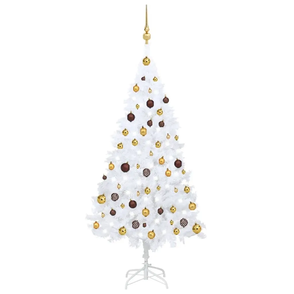 Vidaxl Artificial Christmas Tree With Leds&ball Set White 59.1" Pvc - 5 Foot - Multi