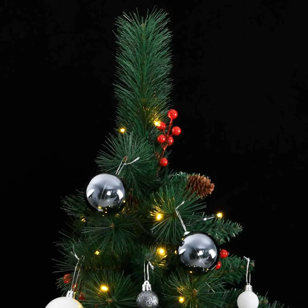 Vidaxl Artificial Hinged Christmas Tree Green And White With Cones And Berries