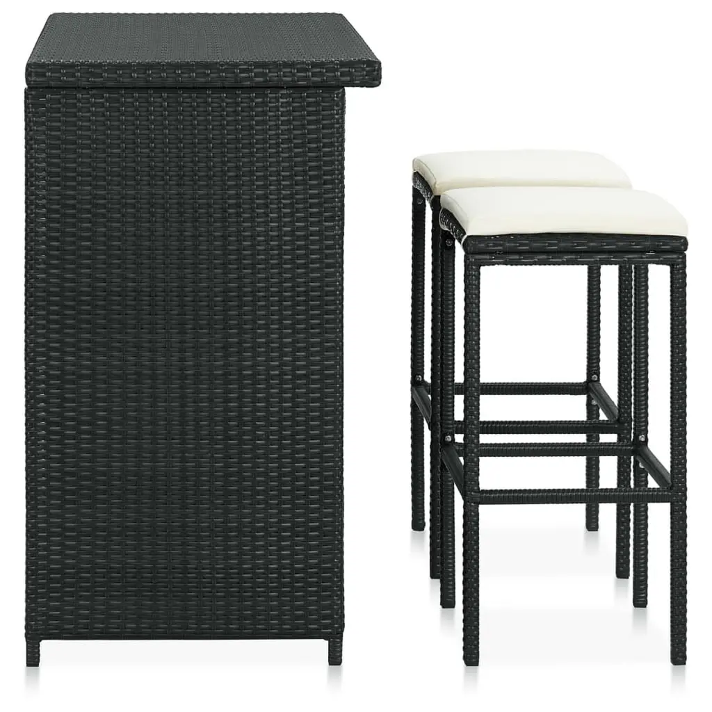 Vidaxl Bar Set Black, Cream White Pe Rattan, Steel, Polyester Compact