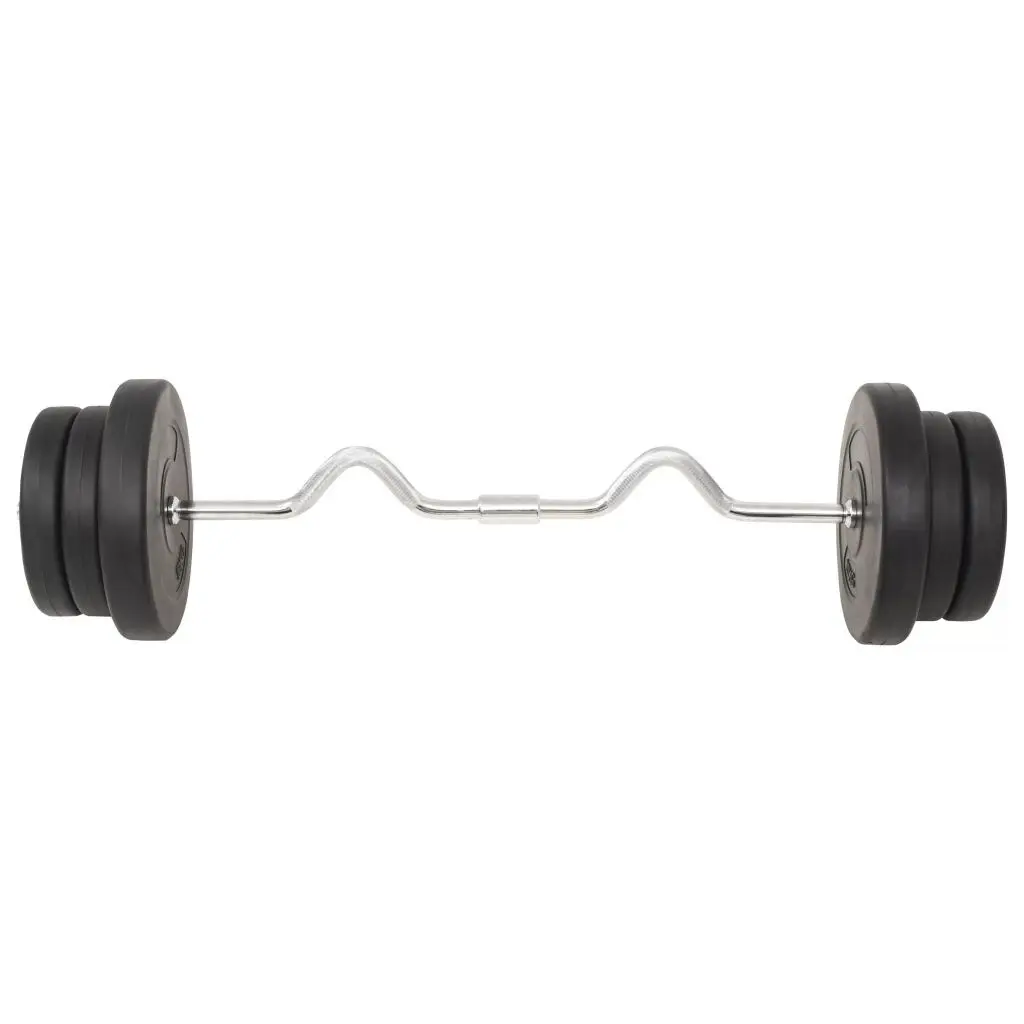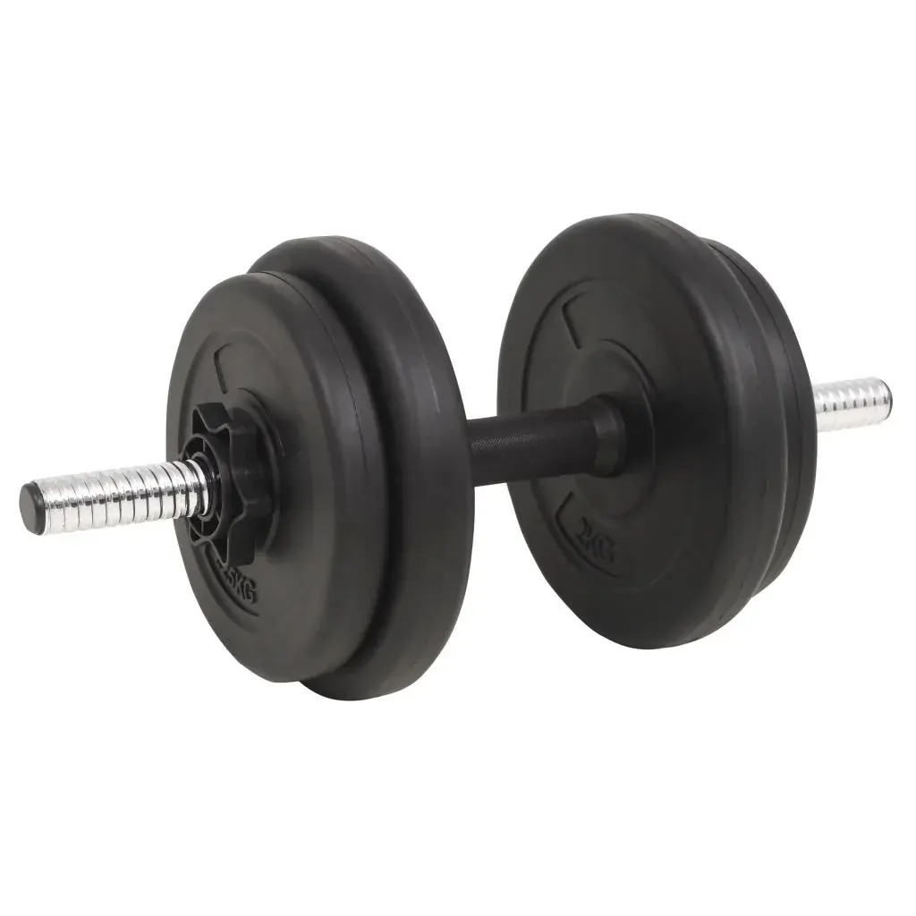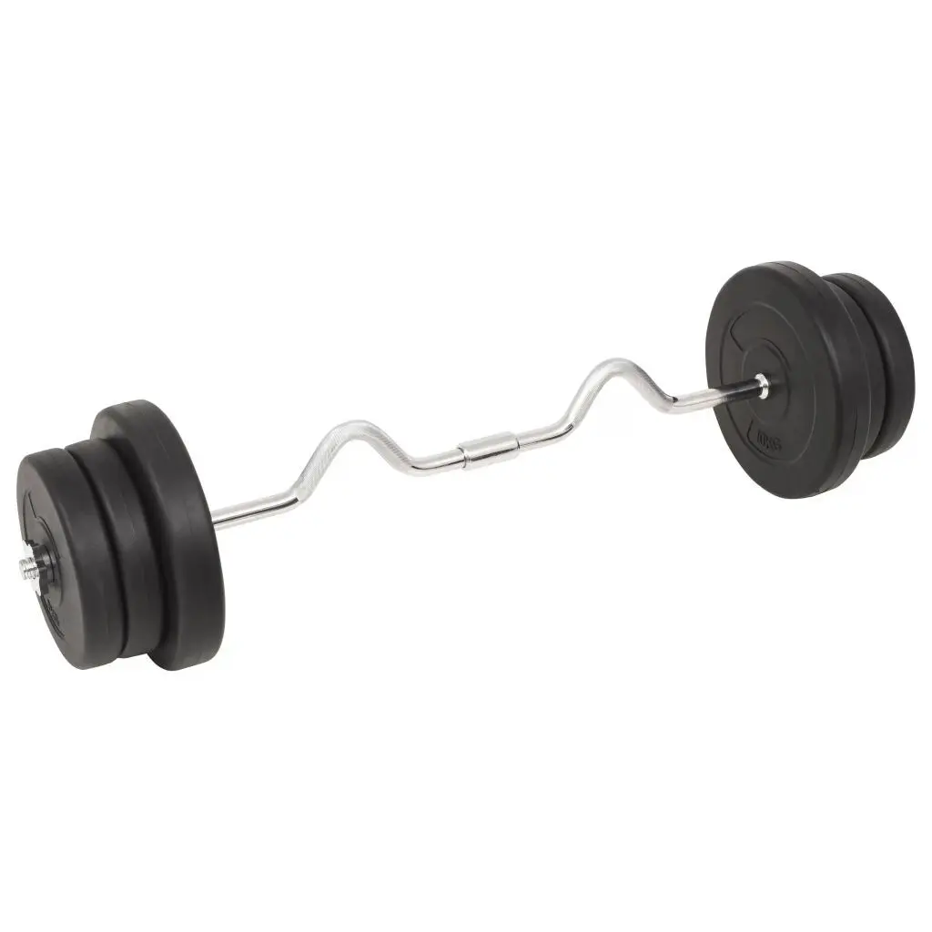 This versatile barbell and dumbbell set is perfect for chest, biceps, arms, triceps and back muscles. It includes two 22 lb plates, four 11 lb plates, four 4.4 lb plates, four 2.8 lb plates, one barbell bar and two dumbbell bar and has a total weight of about 132.3 lb. This set allows the users to variably select the weights they want to lift for different exercises. These plates are made of cement with a plastic shell and they can easily be secured onto the bars with the included star locks. The weight is clearly stamped on each plate for quick and easy identification.