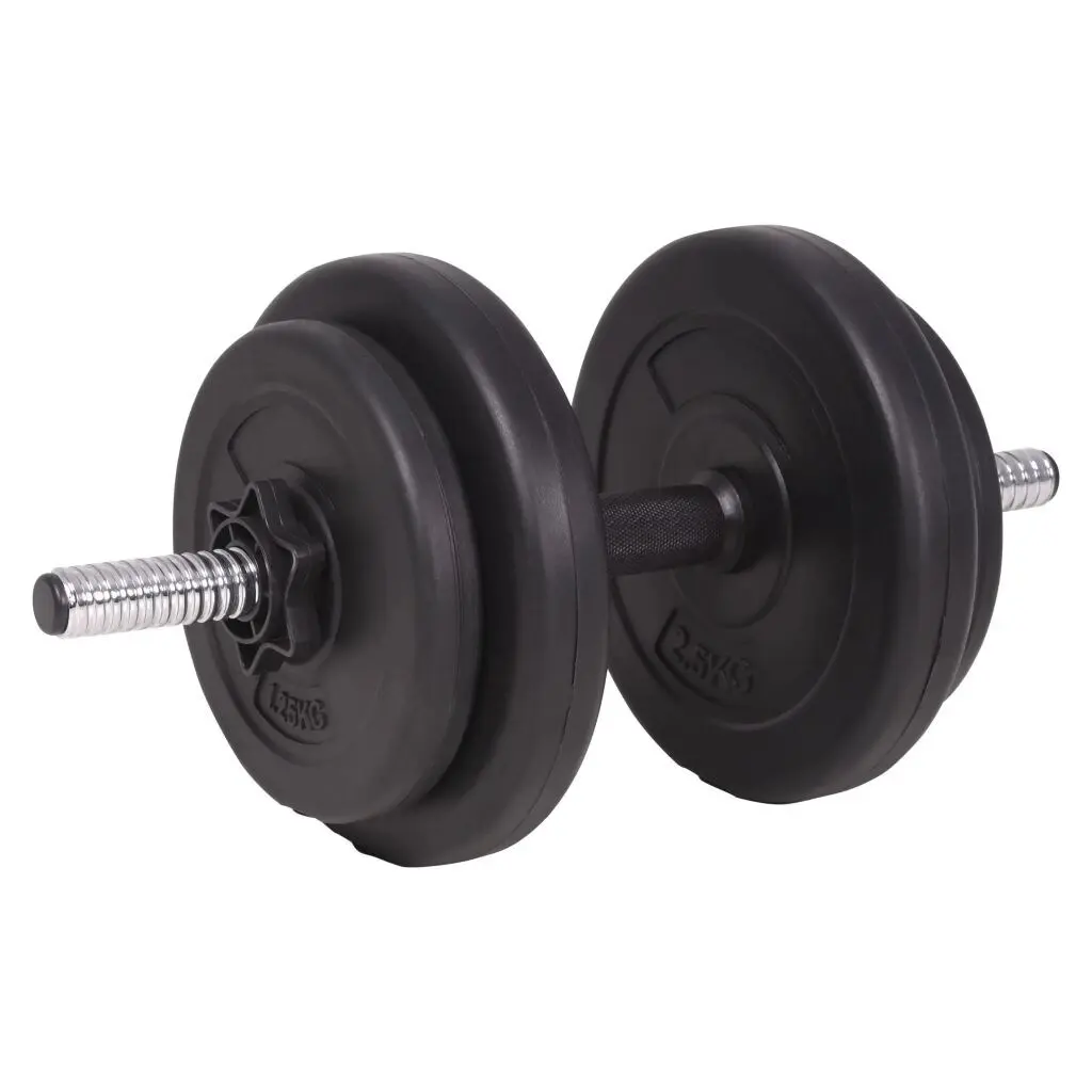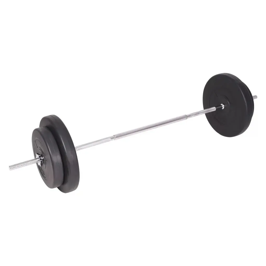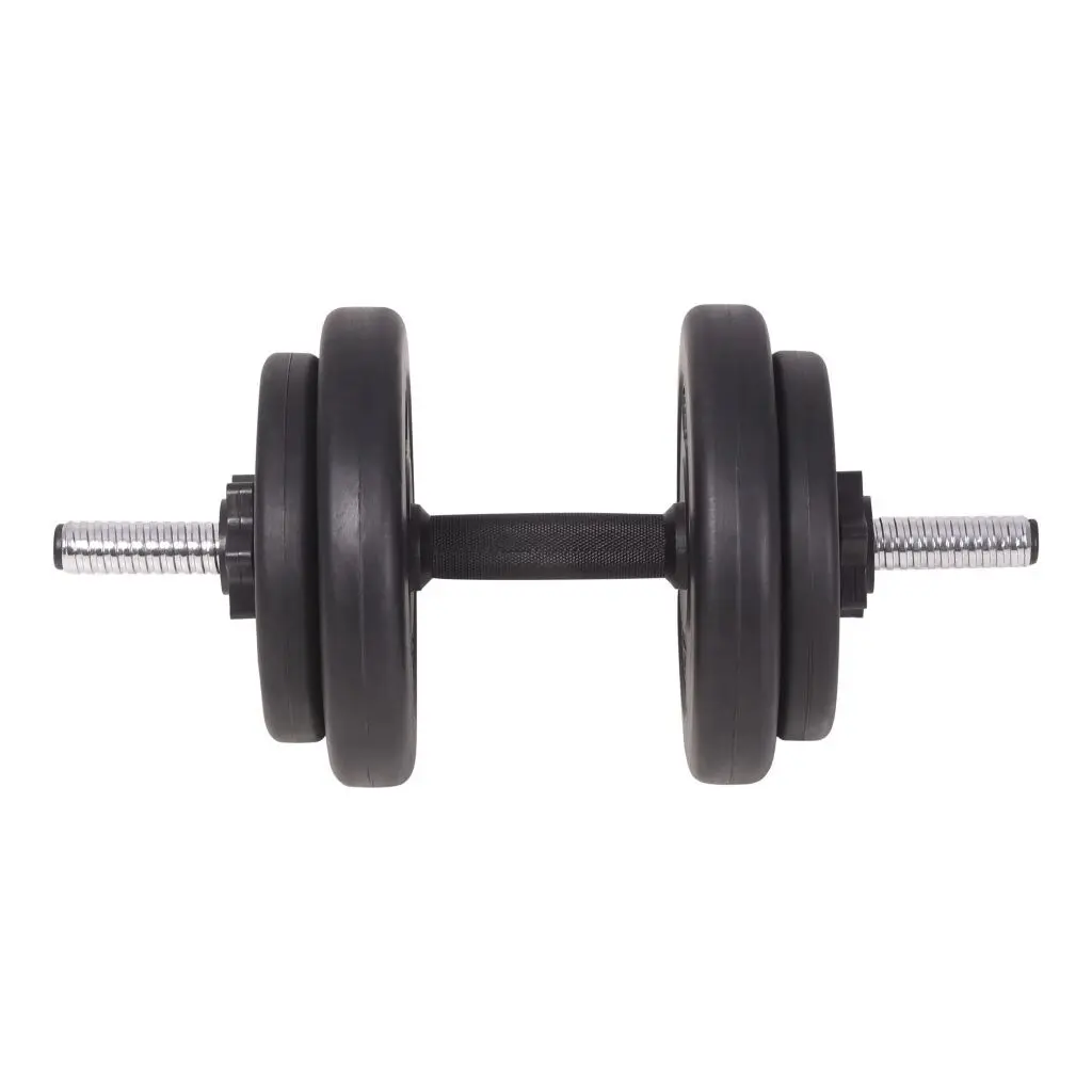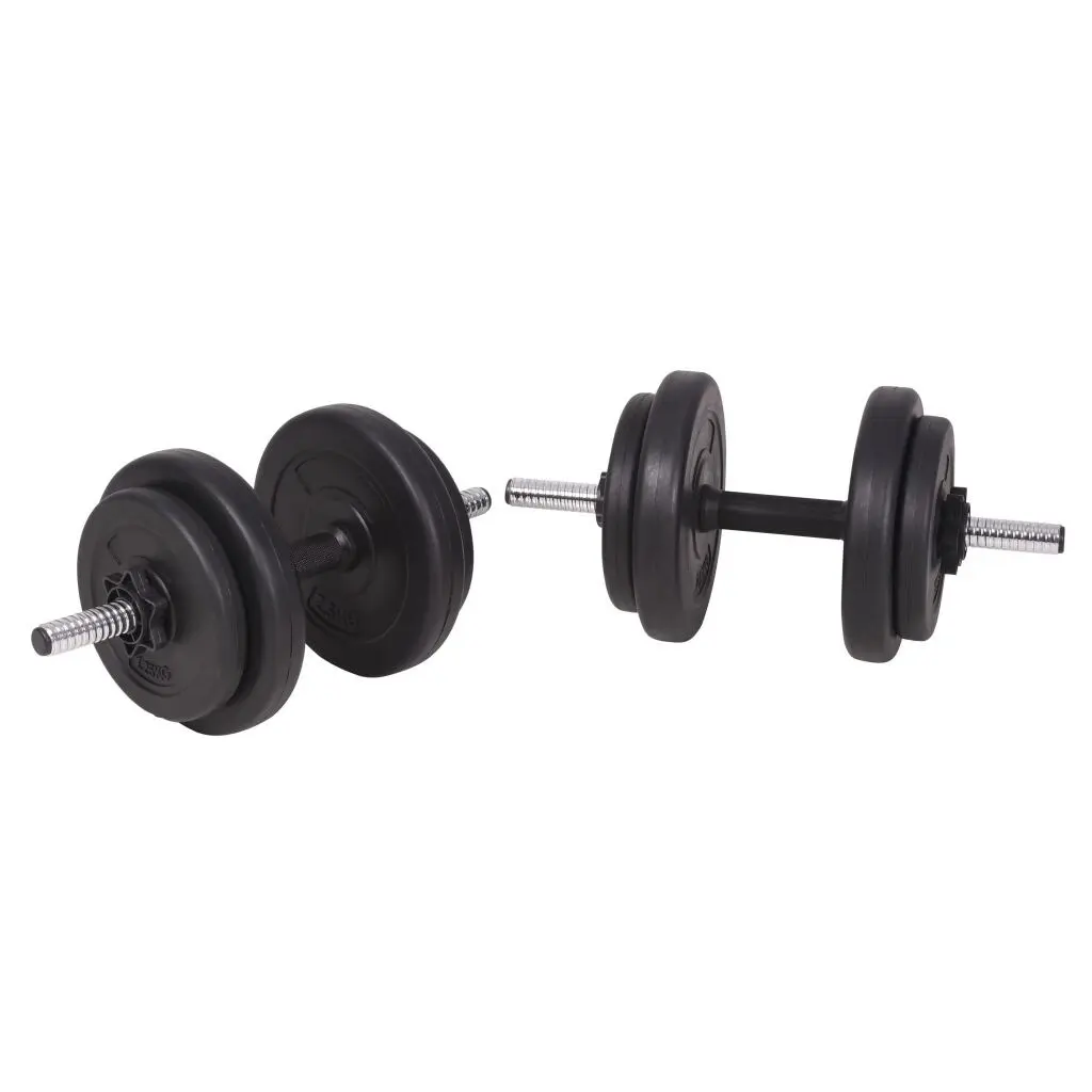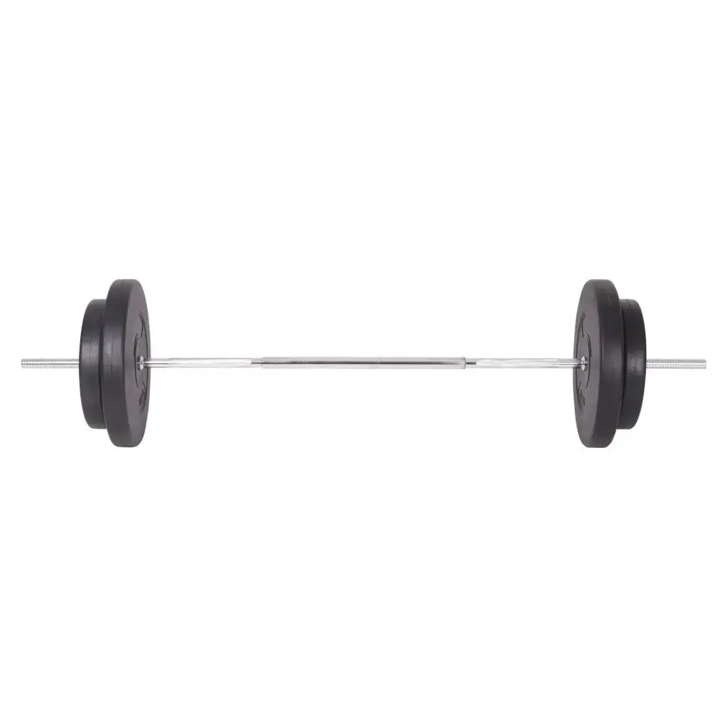 This versatile barbell and dumbbell set is perfect for chest, biceps, arms, triceps and back muscles. It includes two 33.1 lb plates, two 22 lb plates, two 11 lb plates, four 5.5 lb plates, six 2.8 lb plates, two barbell bar and two dumbbell bar and has a total weight of about 198.4 lb. This set allows the users to variably select the weights they want to lift for different exercises. These plates are made of cement with a plastic shell and they can easily be secured onto the bars with the included star locks. The weight is clearly stamped on each plate for quick and easy identification.