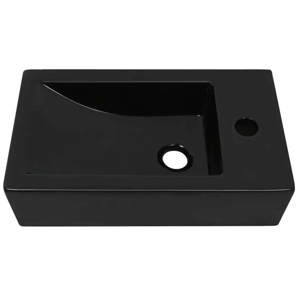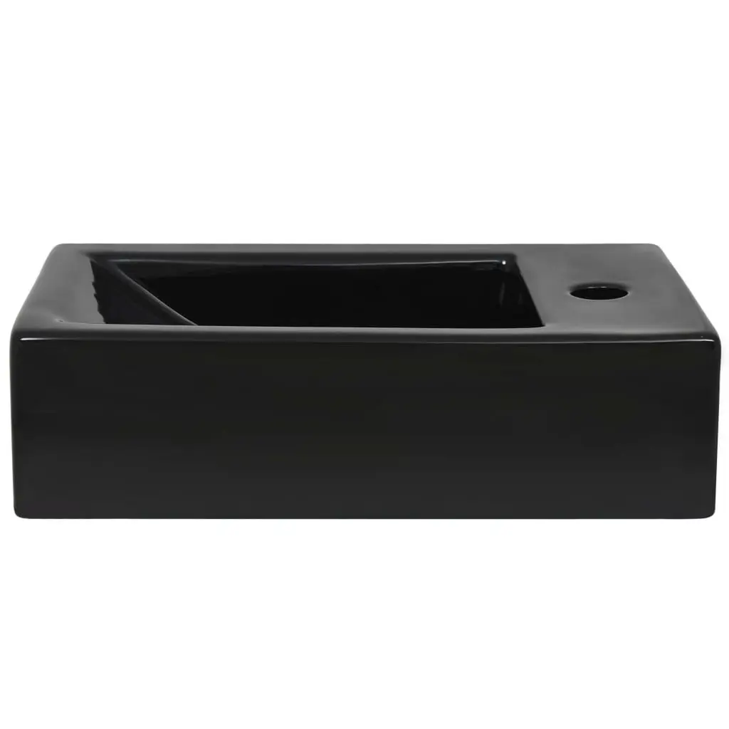 Vidaxl Basin With Faucet Hole Rectangular Ceramic Black 18.1x10.0x4.7"